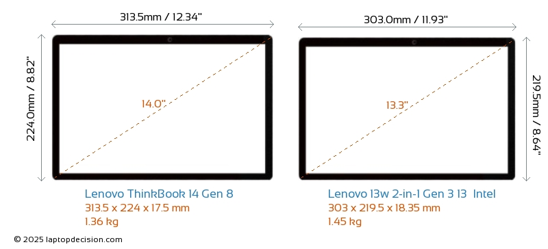 HDMIBoth ThinkBook 14 Gen 8 and 13w 2-in-1 Gen 3 13 Intel feature an HDMI port (1x HDMI 2.1) for connecting to external monitors.