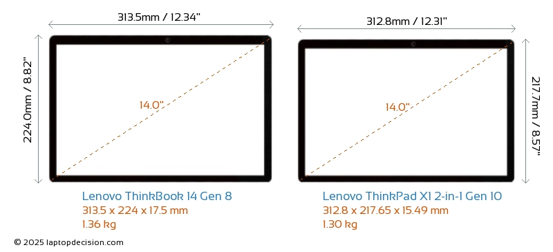 ThunderboltBoth ThinkBook 14 Gen 8 and ThinkPad X1 2-in-1 Gen 10 are equipped with Thunderbolt 4 ports.