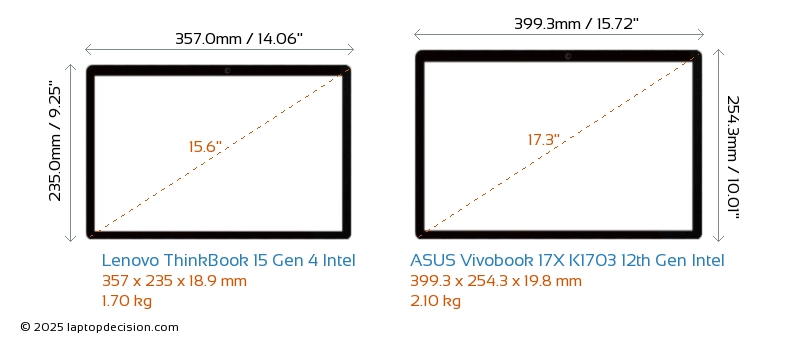 HDMIBoth ThinkBook 15 Gen 4 Intel and Vivobook 17X K1703 12th Gen Intel feature an HDMI port. ThinkBook 15 Gen 4 Intel offers 1x HDMI 2.0, while Vivobook 17X K1703 12th Gen Intel offers 1x HDMI 1.4.