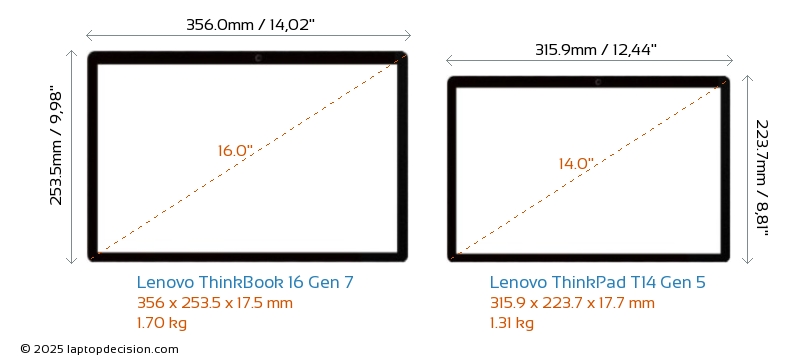 HDMIBoth ThinkBook 16 Gen 7 and ThinkPad T14 Gen 5 feature an HDMI port (1x HDMI 2.1) for connecting to external monitors.