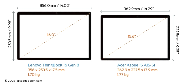 SD Card Reader ThinkBook 16 Gen 8 is equipped with an SD Card Reader for easy access to memory cards. Aspire 15 A15-51 does not have an SD Card Reader.