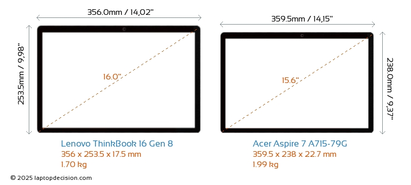 Audio JackBoth ThinkBook 16 Gen 8 and Aspire 7 A715-79G are equipped with a 3.5mm Audio Jack, providing seamless connection to headphones and speakers.