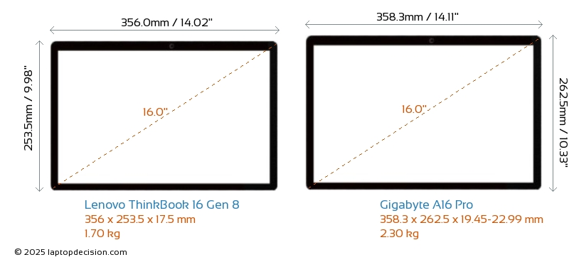 HDMIBoth ThinkBook 16 Gen 8 and A16 Pro feature an HDMI port (1x HDMI 2.1) for connecting to external monitors.