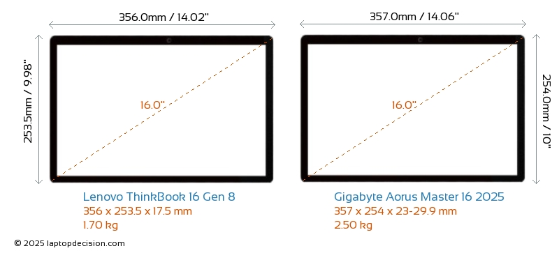 Audio JackBoth ThinkBook 16 Gen 8 and Aorus Master 16 2025 are equipped with a 3.5mm Audio Jack, providing seamless connection to headphones and speakers.
