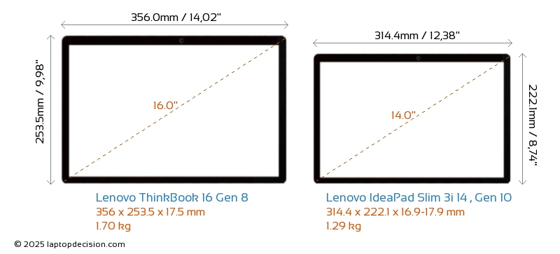 HDMIBoth ThinkBook 16 Gen 8 and IdeaPad Slim 3i 14 , Gen 10 feature an HDMI port. ThinkBook 16 Gen 8 offers 1x HDMI 2.1, while IdeaPad Slim 3i 14 , Gen 10 offers 1x HDMI 1.4.