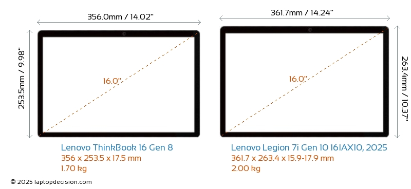 ThunderboltBoth ThinkBook 16 Gen 8 and Legion 7i Gen 10 16IAX10, 2025 are equipped with Thunderbolt 4 ports.