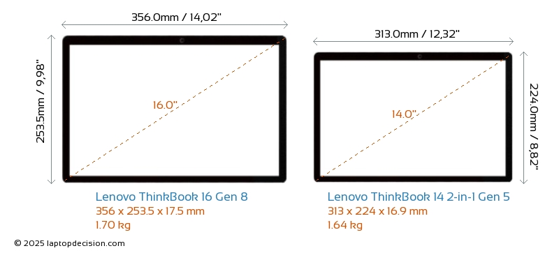 HDMIBoth ThinkBook 16 Gen 8 and ThinkBook 14 2-in-1 Gen 5 feature an HDMI port (1x HDMI 2.1) for connecting to external monitors.