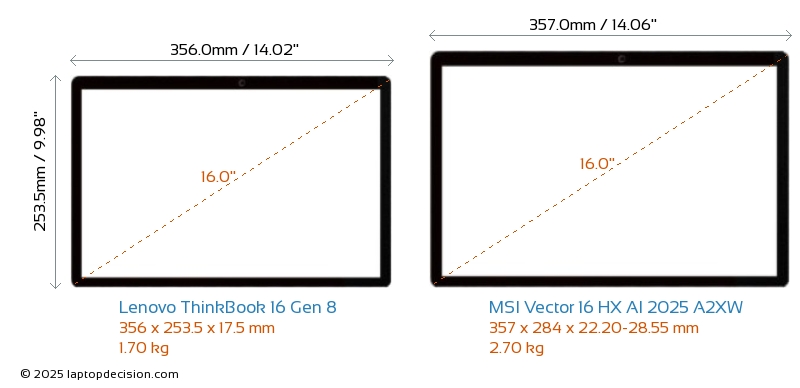 Audio JackBoth ThinkBook 16 Gen 8 and Vector 16 HX AI 2025 A2XW are equipped with a 3.5mm Audio Jack, providing seamless connection to headphones and speakers.