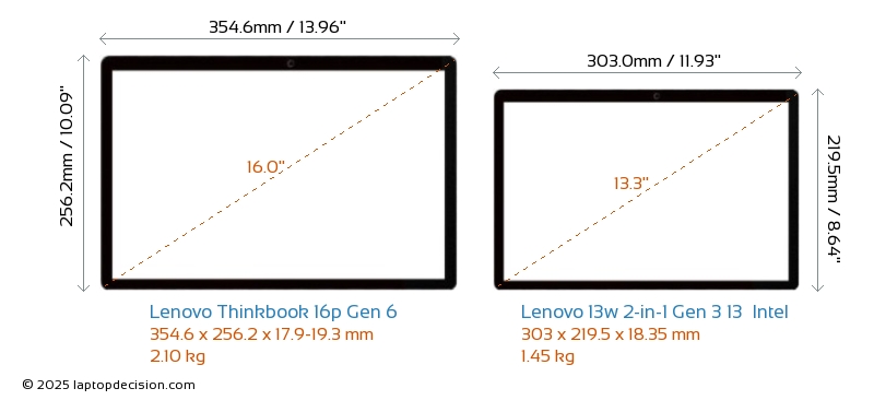 Audio JackBoth Thinkbook 16p Gen 6 and 13w 2-in-1 Gen 3 13 Intel are equipped with a 3.5mm Audio Jack, providing seamless connection to headphones and speakers.