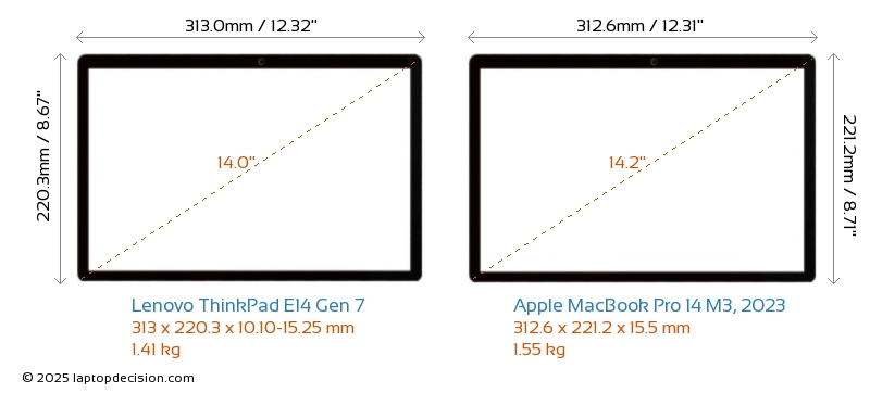 HDMIBoth ThinkPad E14 Gen 7 and MacBook Pro 14 M3, 2023 feature an HDMI port (1x HDMI 2.1) for connecting to external monitors.