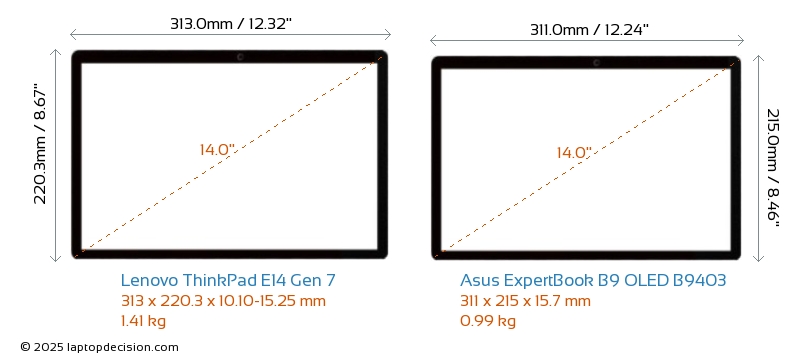 HDMIBoth ThinkPad E14 Gen 7 and ExpertBook B9 OLED B9403 feature an HDMI port (1x HDMI 2.1) for connecting to external monitors.