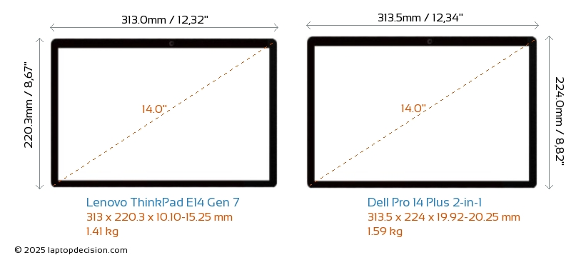 HDMIBoth ThinkPad E14 Gen 7 and Pro 14 Plus 2-in-1 feature an HDMI port (1x HDMI 2.1) for connecting to external monitors.