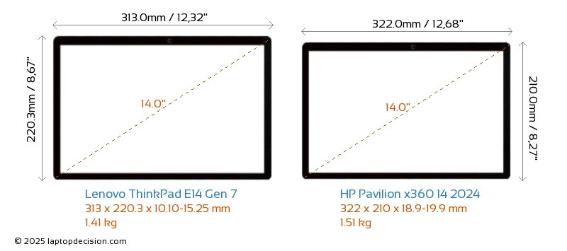 HDMIBoth ThinkPad E14 Gen 7 and Pavilion x360 14 2024 feature an HDMI port (1x HDMI 2.1) for connecting to external monitors.