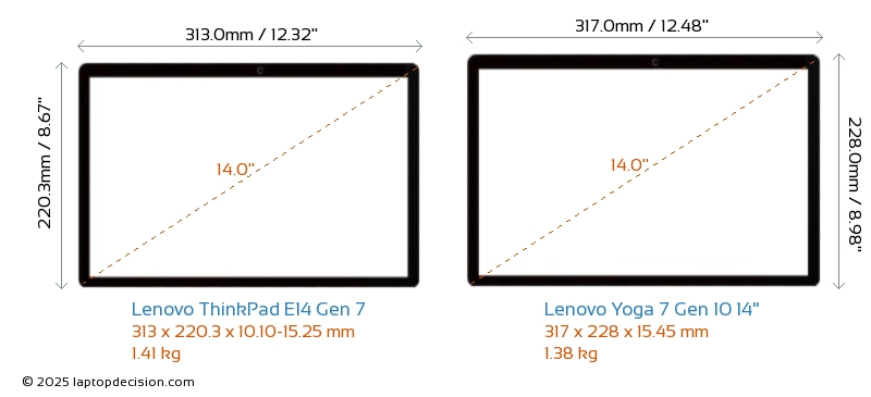 HDMIBoth ThinkPad E14 Gen 7 and Yoga 7 Gen 10 14" feature an HDMI port (1x HDMI 2.1) for connecting to external monitors.