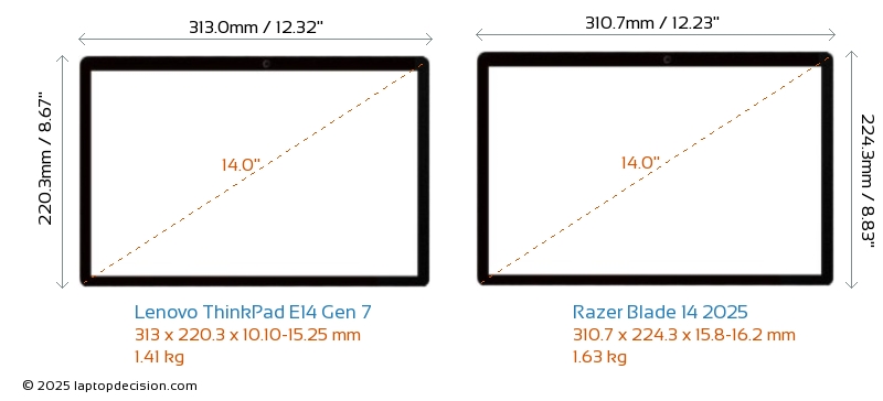 HDMIBoth ThinkPad E14 Gen 7 and Blade 14 2025 feature an HDMI port (1x HDMI 2.1) for connecting to external monitors.