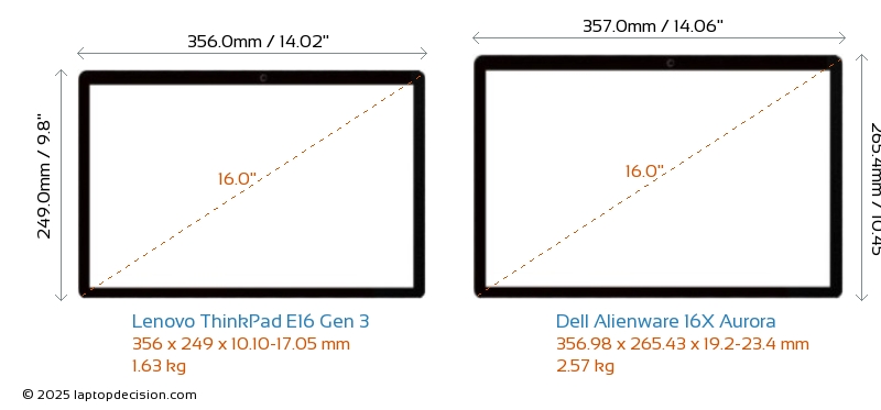 ThunderboltBoth ThinkPad E16 Gen 3 and Alienware 16X Aurora are equipped with Thunderbolt 4 ports.