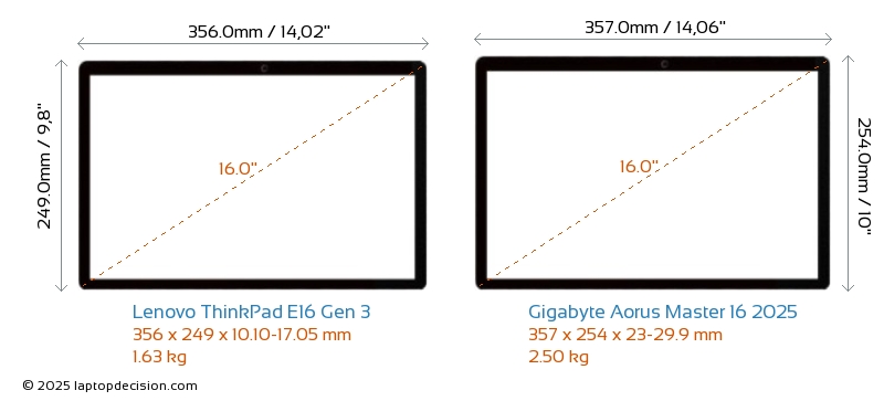 HDMIBoth ThinkPad E16 Gen 3 and Aorus Master 16 2025 feature an HDMI port (1x HDMI 2.1) for connecting to external monitors.