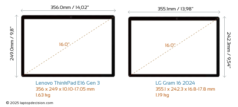 HDMIBoth ThinkPad E16 Gen 3 and Gram 16 2024 feature an HDMI port (1x HDMI 2.1) for connecting to external monitors.