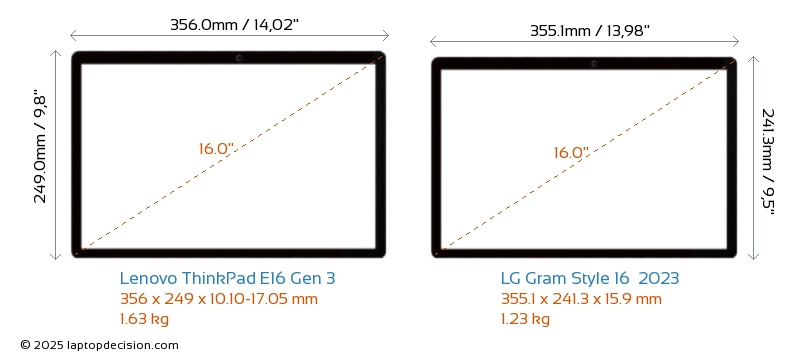HDMI ThinkPad E16 Gen 3 features an HDMI port (1x HDMI 2.1) for connecting to external monitors. Gram Style 16 2023 does not have an HDMI port.