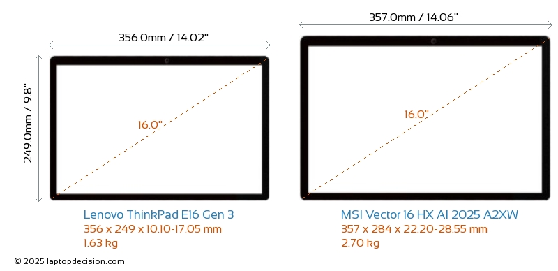 HDMIBoth ThinkPad E16 Gen 3 and Vector 16 HX AI 2025 A2XW feature an HDMI port (1x HDMI 2.1) for connecting to external monitors.