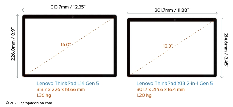 ThunderboltBoth ThinkPad L14 Gen 5 and ThinkPad X13 2-in-1 Gen 5 are equipped with Thunderbolt 4 ports.