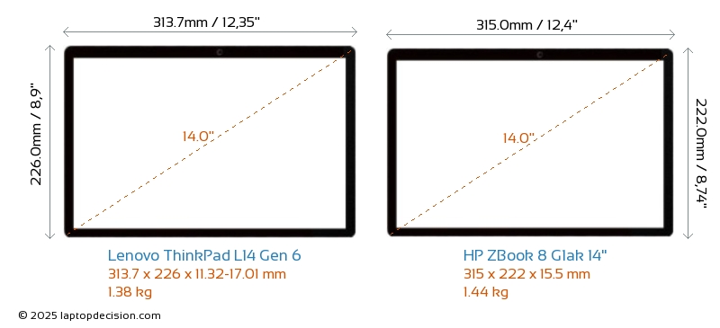 ThunderboltBoth ThinkPad L14 Gen 6 and ZBook 8 G1ak 14" are equipped with Thunderbolt 4 ports.