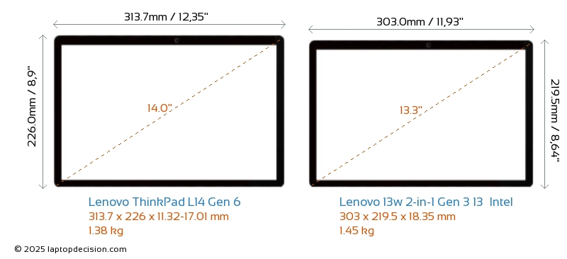 Audio JackBoth ThinkPad L14 Gen 6 and 13w 2-in-1 Gen 3 13 Intel are equipped with a 3.5mm Audio Jack, providing seamless connection to headphones and speakers.