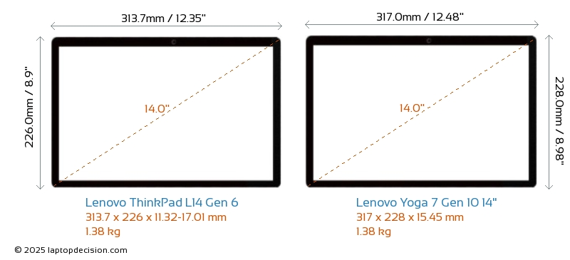 HDMIBoth ThinkPad L14 Gen 6 and Yoga 7 Gen 10 14" feature an HDMI port (1x HDMI 2.1) for connecting to external monitors.
