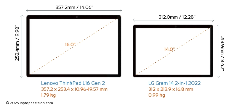 HDMIBoth ThinkPad L16 Gen 2 and Gram 14 2-in-1 2022 feature an HDMI port. ThinkPad L16 Gen 2 offers 1x HDMI 2.1, while Gram 14 2-in-1 2022 offers 1x HDMI 2.0.