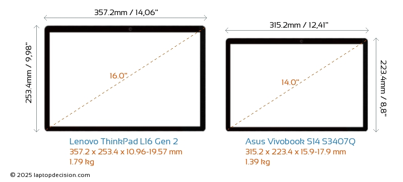 Audio JackBoth ThinkPad L16 Gen 2 and Vivobook S14 S3407Q are equipped with a 3.5mm Audio Jack, providing seamless connection to headphones and speakers.