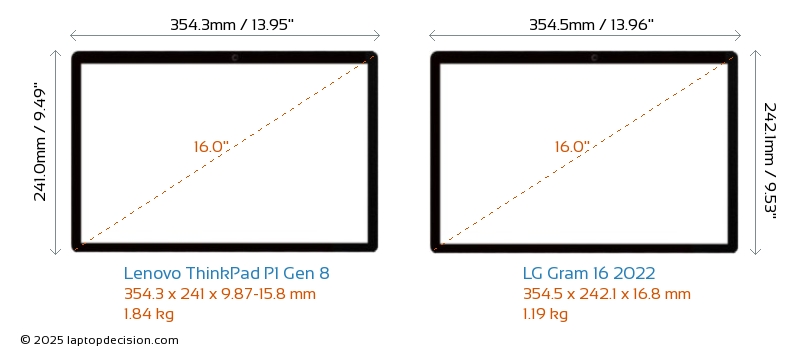 HDMIBoth ThinkPad P1 Gen 8 and Gram 16 2022 feature an HDMI port. ThinkPad P1 Gen 8 offers 1x HDMI 2.1, while Gram 16 2022 offers 1x HDMI 2.0.