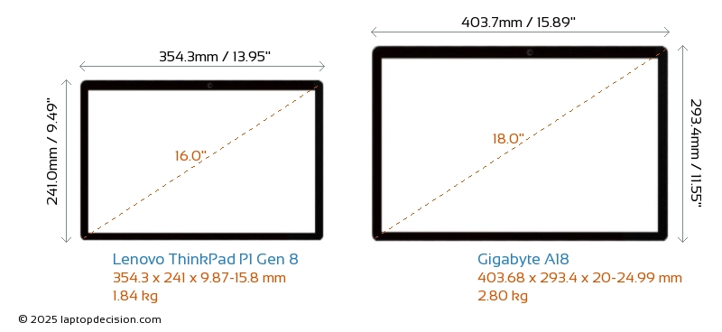 Thunderbolt ThinkPad P1 Gen 8 is equipped with Thunderbolt 5 port. A18 does not have Thunderbolt port.