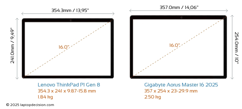 ThunderboltBoth ThinkPad P1 Gen 8 and Aorus Master 16 2025 are equipped with Thunderbolt 5 ports.