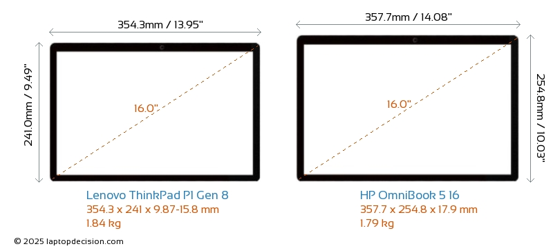 Audio JackBoth ThinkPad P1 Gen 8 and OmniBook 5 16 are equipped with a 3.5mm Audio Jack, providing seamless connection to headphones and speakers.