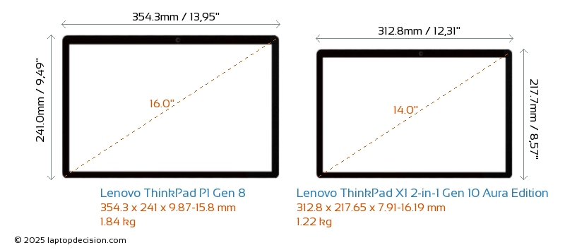 ThunderboltBoth ThinkPad P1 Gen 8 and ThinkPad X1 2-in-1 Gen 10 Aura Edition feature Thunderbolt ports. ThinkPad P1 Gen 8 has Thunderbolt 5, while ThinkPad X1 2-in-1 Gen 10 Aura Edition has Thunderbolt 4.