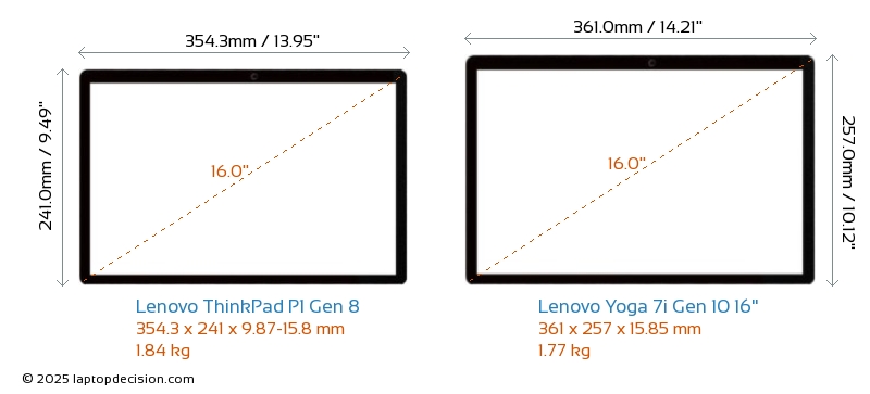 ThunderboltBoth ThinkPad P1 Gen 8 and Yoga 7i Gen 10 16" feature Thunderbolt ports. ThinkPad P1 Gen 8 has Thunderbolt 5, while Yoga 7i Gen 10 16" has Thunderbolt 4.