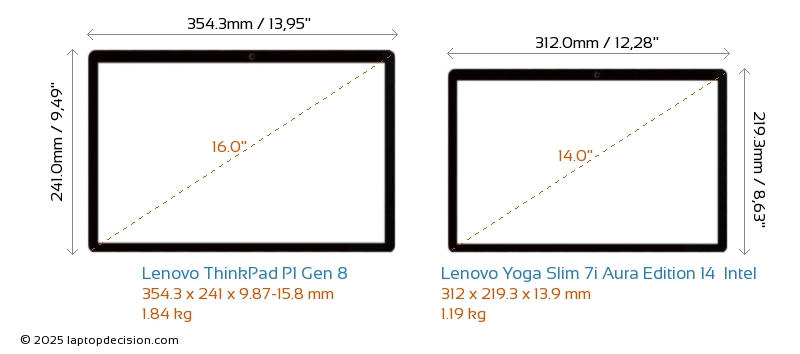 HDMIBoth ThinkPad P1 Gen 8 and Yoga Slim 7i Aura Edition 14 Intel feature an HDMI port (1x HDMI 2.1) for connecting to external monitors.