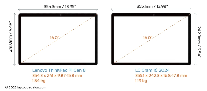 Wifi ThinkPad P1 Gen 8 features a more advanced Wi-Fi standard v7, providing faster and more reliable wireless connections compared to Gram 16 2024 (v6E).