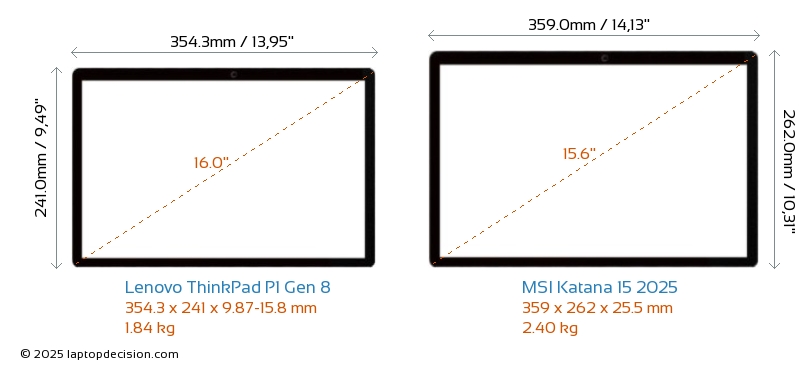Audio JackBoth ThinkPad P1 Gen 8 and Katana 15 2025 are equipped with a 3.5mm Audio Jack, providing seamless connection to headphones and speakers.