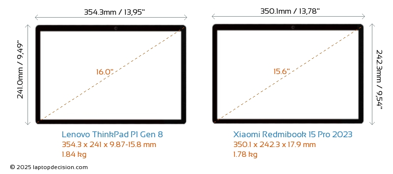 Audio JackBoth ThinkPad P1 Gen 8 and Redmibook 15 Pro 2023 are equipped with a 3.5mm Audio Jack, providing seamless connection to headphones and speakers.