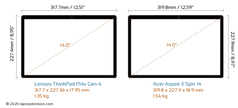 USBBoth ThinkPad P14s Gen 4 and Aspire 3 Spin 14 feature 2x USB 3.2 USB-A ports.Both ThinkPad P14s Gen 4 and Aspire 3 Spin 14 have USB Type-C ports. ThinkPad P14s Gen 4 has 2x USB 4.0 USB Type-C ports, while Aspire 3 Spin 14 has 1x USB 3.2 USB Type-C ports.