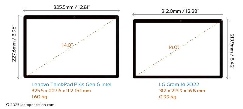 HDMIBoth ThinkPad P14s Gen 6 Intel and Gram 14 2022 feature an HDMI port. ThinkPad P14s Gen 6 Intel offers 1x HDMI 2.1, while Gram 14 2022 offers 1x HDMI 2.0.