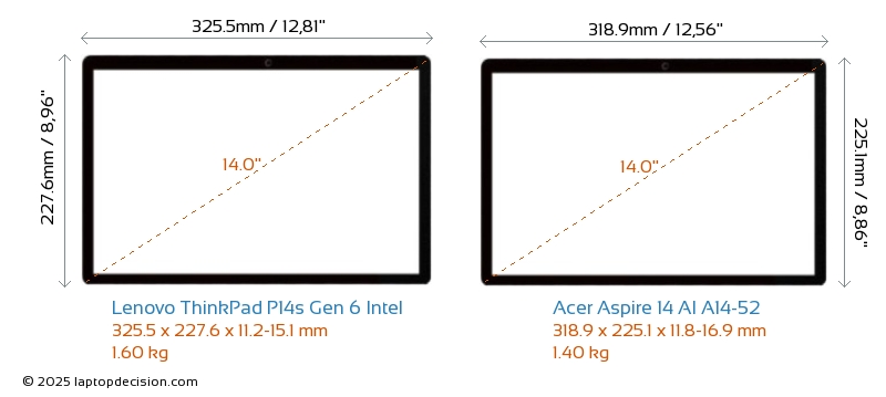 USBBoth ThinkPad P14s Gen 6 Intel and Aspire 14 AI A14-52 feature 2x USB 3.2 USB-A ports.Both ThinkPad P14s Gen 6 Intel and Aspire 14 AI A14-52 feature 2x USB 4.0 USB Type-C ports.