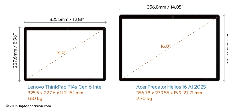 HDMIBoth ThinkPad P14s Gen 6 Intel and Predator Helios 16 AI 2025 feature an HDMI port (1x HDMI 2.1) for connecting to external monitors.