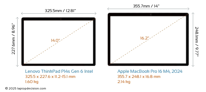 ThunderboltBoth ThinkPad P14s Gen 6 Intel and MacBook Pro 16 M4, 2024 feature Thunderbolt ports. ThinkPad P14s Gen 6 Intel has Thunderbolt 4, while MacBook Pro 16 M4, 2024 has Thunderbolt 5.