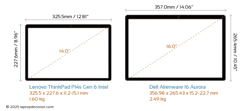 Audio JackBoth ThinkPad P14s Gen 6 Intel and Alienware 16 Aurora are equipped with a 3.5mm Audio Jack, providing seamless connection to headphones and speakers.