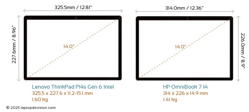 USBBoth ThinkPad P14s Gen 6 Intel and OmniBook 7 14 feature 2x USB 3.2 USB-A ports.Both ThinkPad P14s Gen 6 Intel and OmniBook 7 14 feature 2x USB 4.0 USB Type-C ports.