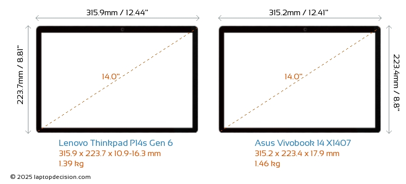 Audio JackBoth Thinkpad P14s Gen 6 and Vivobook 14 X1407 are equipped with a 3.5mm Audio Jack, providing seamless connection to headphones and speakers.