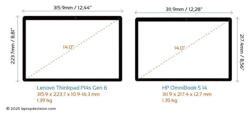 HDMI Thinkpad P14s Gen 6 features an HDMI port (1x HDMI 2.1) for connecting to external monitors. OmniBook 5 14 does not have an HDMI port.