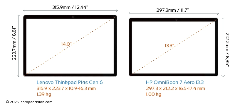 HDMIBoth Thinkpad P14s Gen 6 and OmniBook 7 Aero 13.3 feature an HDMI port (1x HDMI 2.1) for connecting to external monitors.